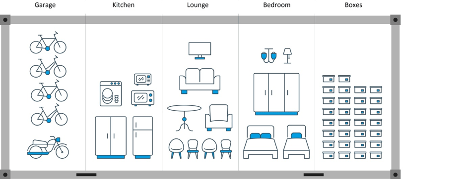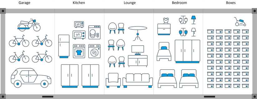 A 40ft container can hold around 65-75 cubic meters and is normally suitable for a Dubai villa of around 4+ bedrooms.